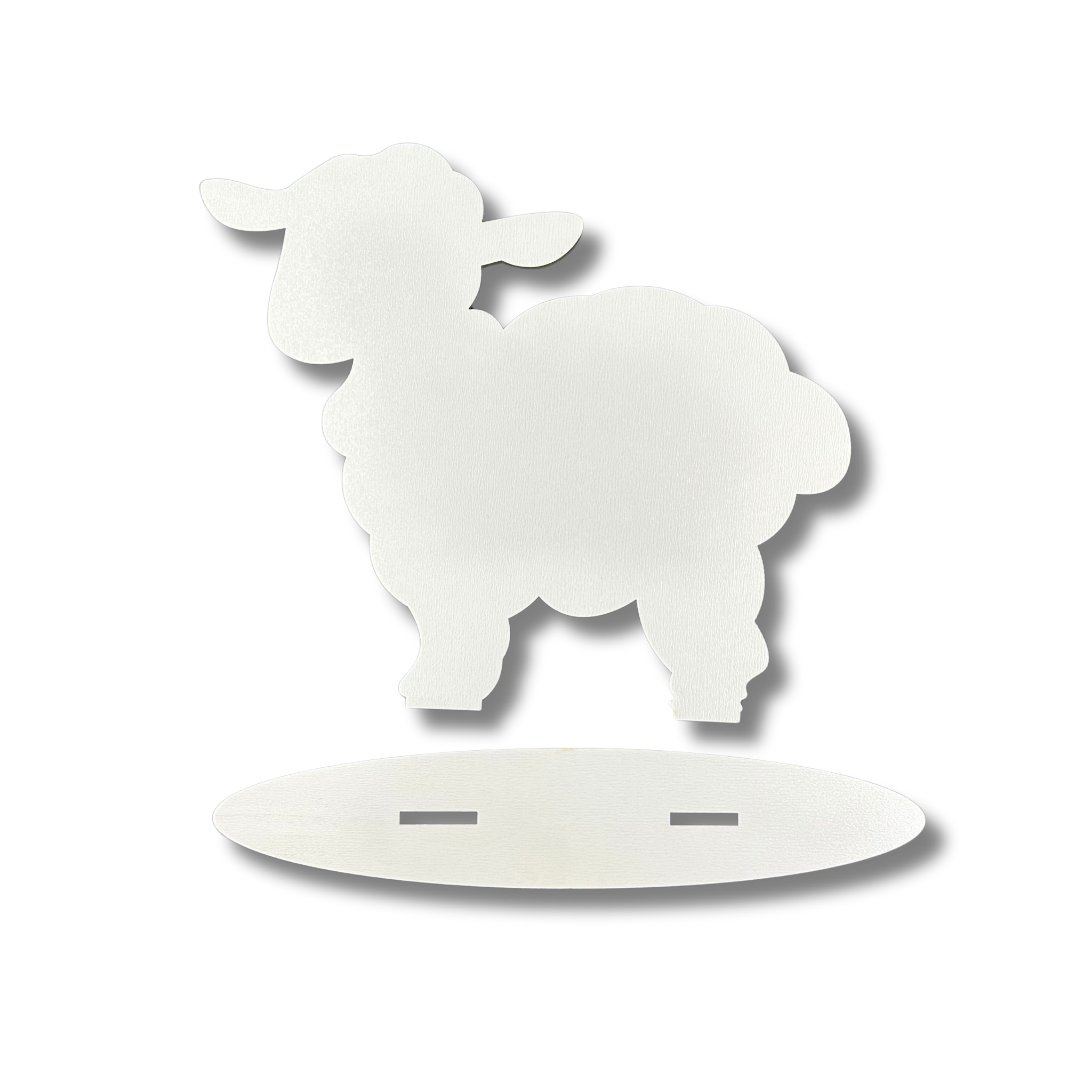 BIAŁY drewniany baranek 15cm owca na podstawce decoupage dekor wielkanoc