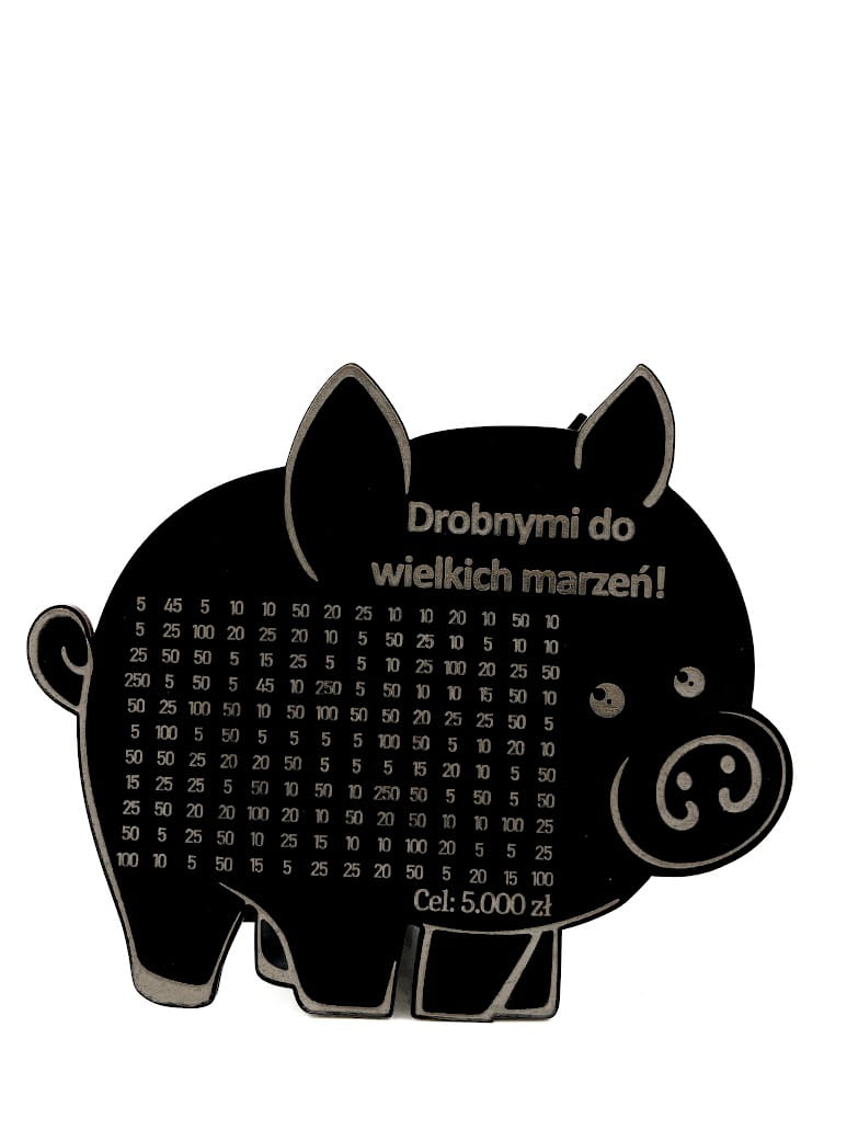 - Wygrawerowana tabelka: Na powierzchni skarbonki znajduje się tabelka, w której można wykreślać kolejne kwoty w miarę dodawania gotówki.