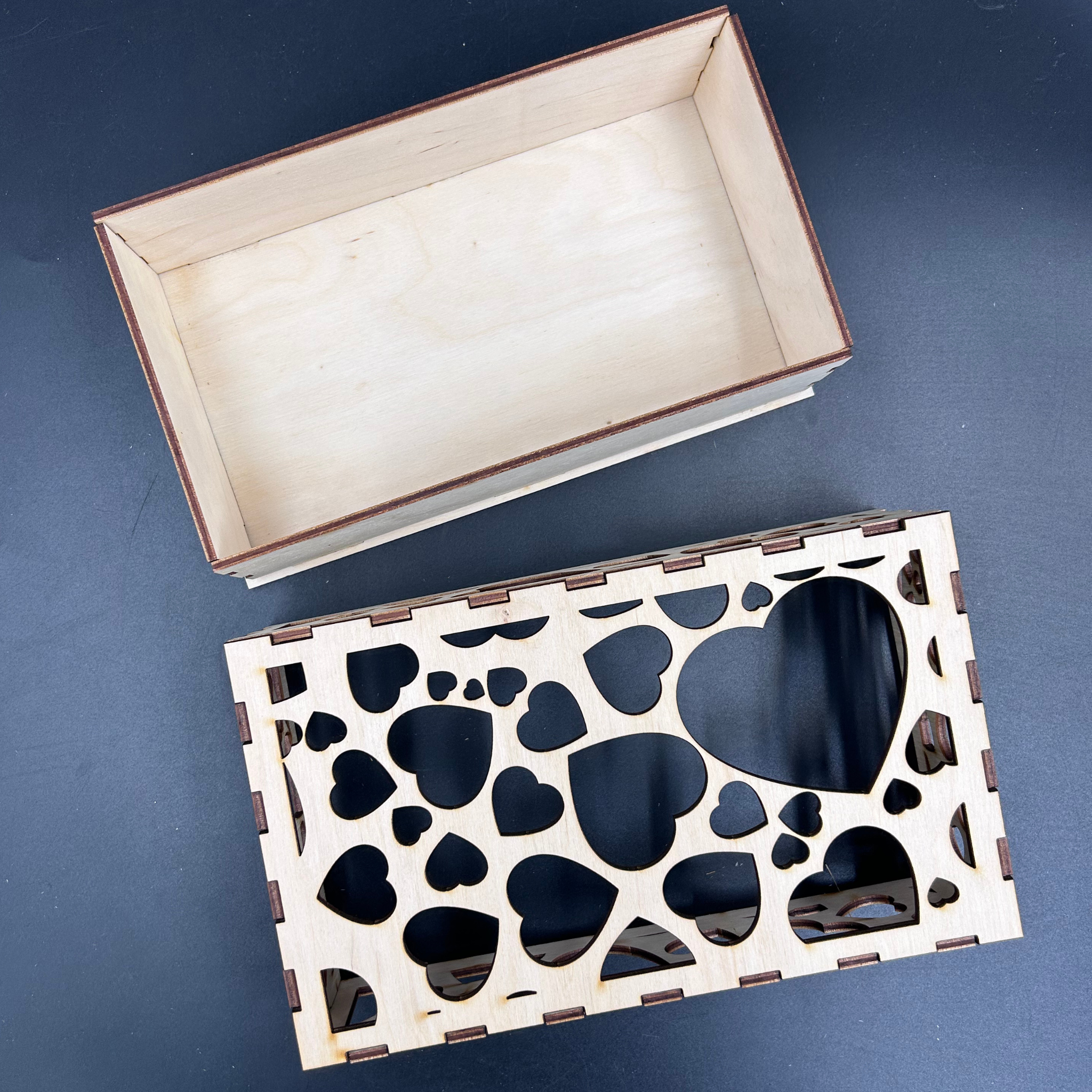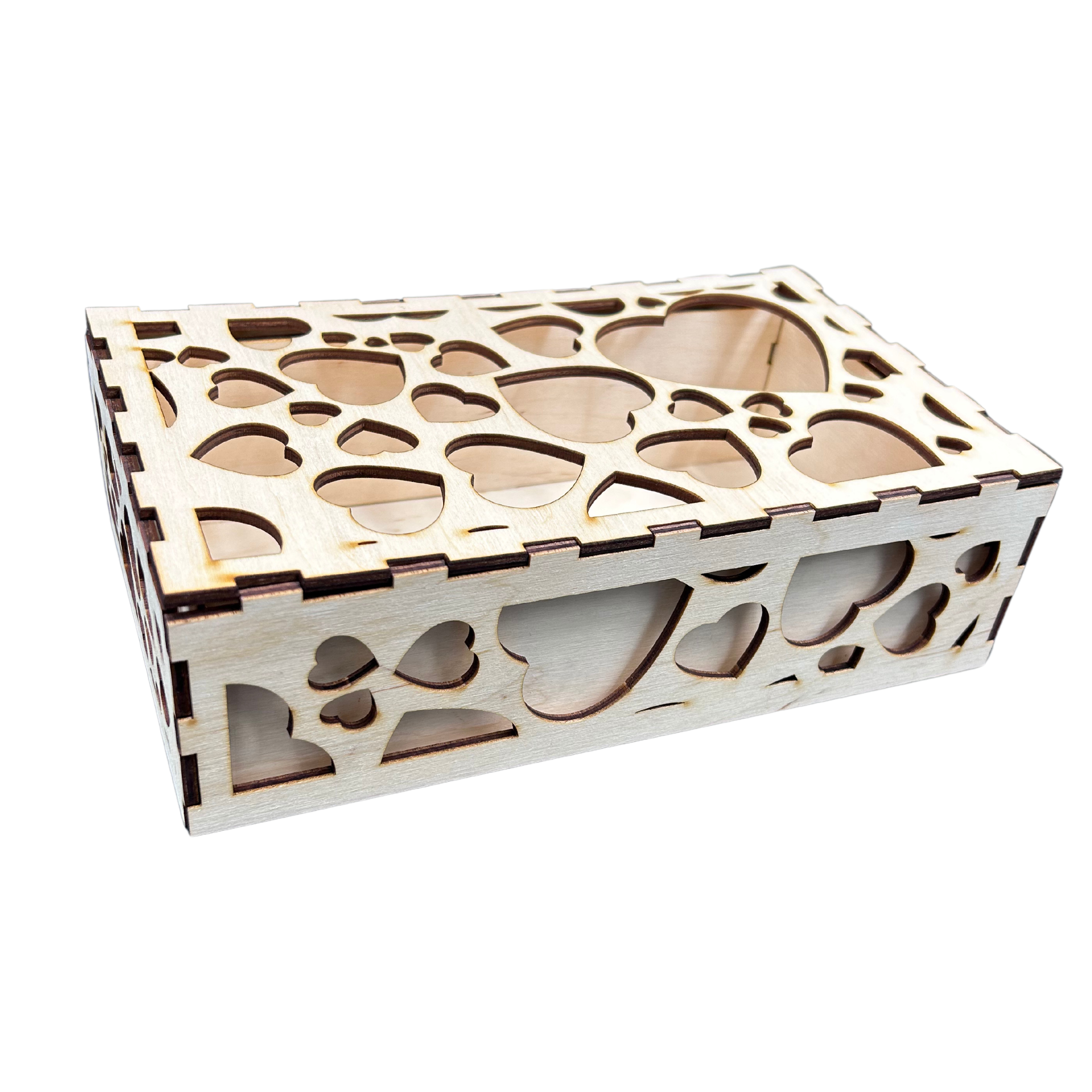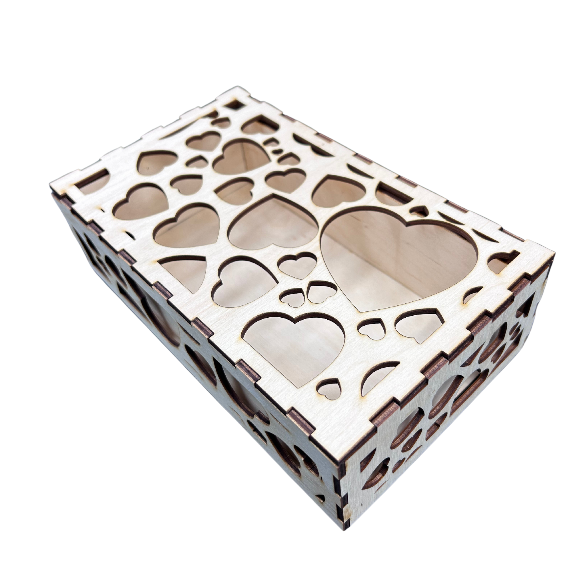 Drewniane pudełko jedno w drugie SERCE chustecznik serwetnik ze sklejki decoupage ażur 22cm walentynki