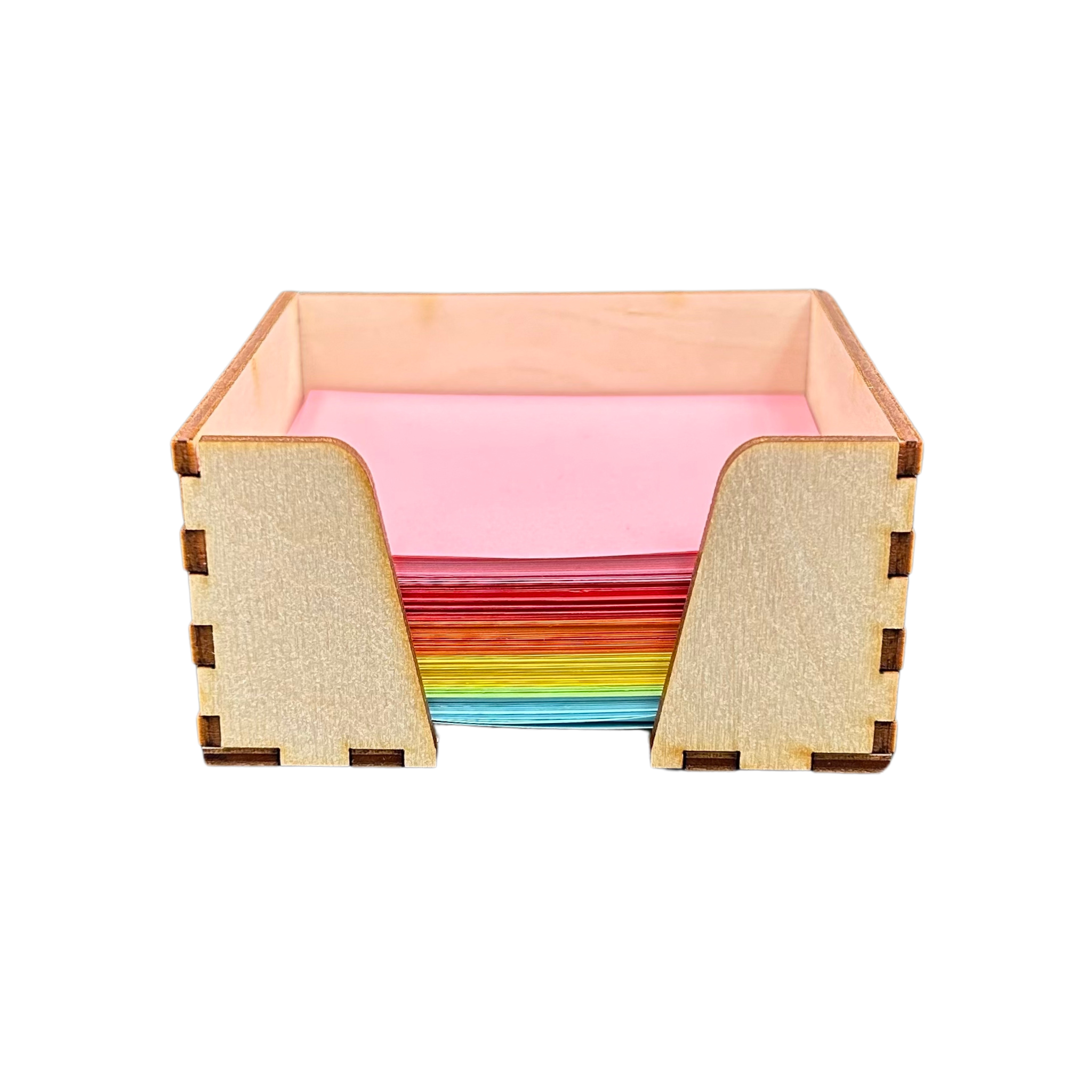Drewniane pudełko pojemnik na karteczki przybornik na biurko