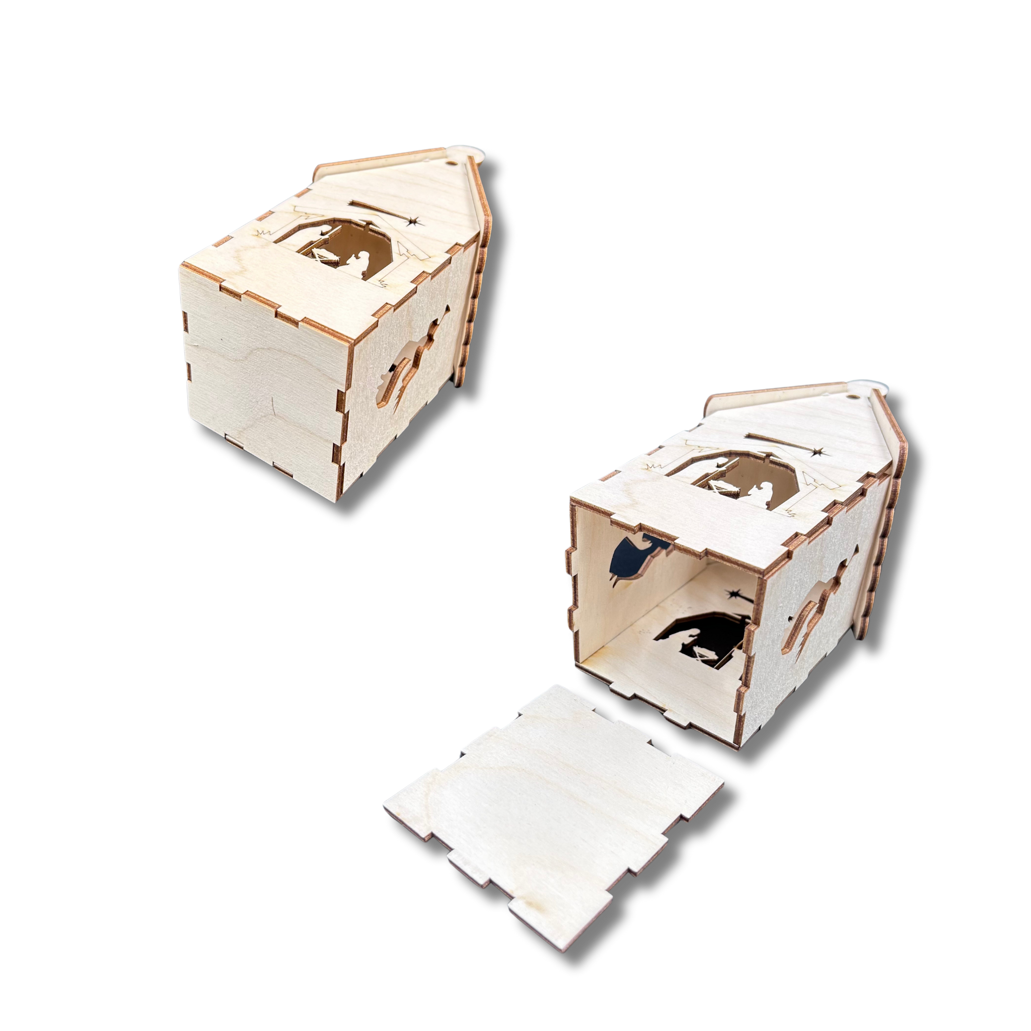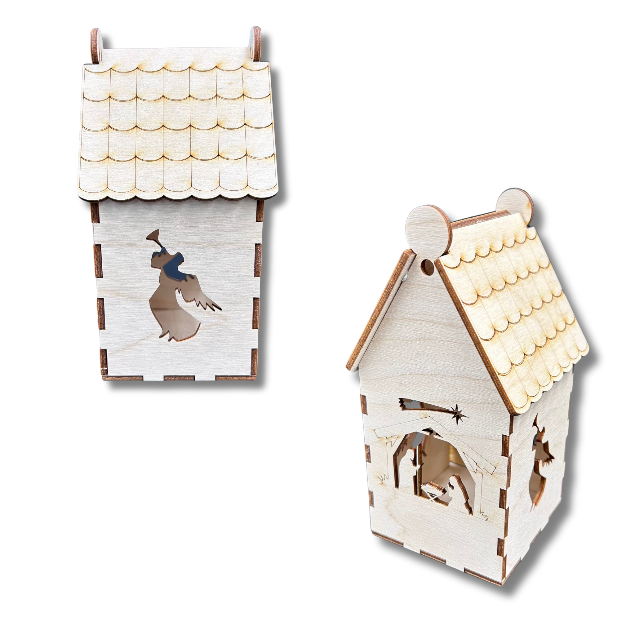 Drewniany domek lampion Stajenka Aniołki latarenka ze sklejki 3D ozdoba decoupage dekor święta Boże Narodzenie