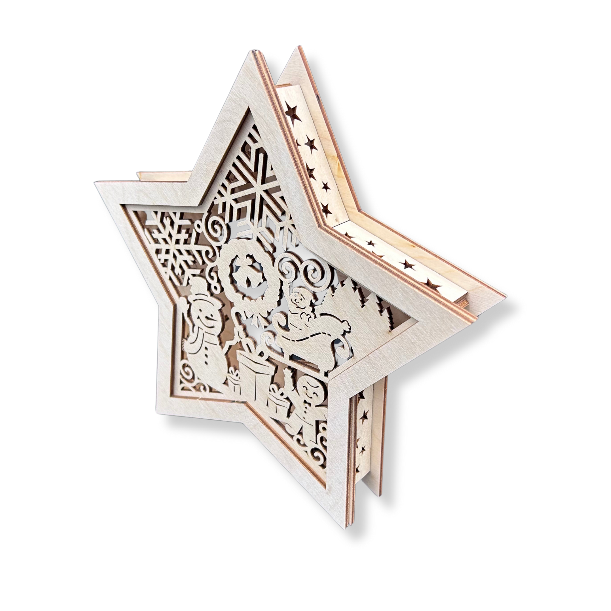 LAMPION Drewniana Gwiazdka ŚWIĄTECZNA Bałwan ŚWIĘTA Boże Narodzenie - bez lampek LED w zestawie