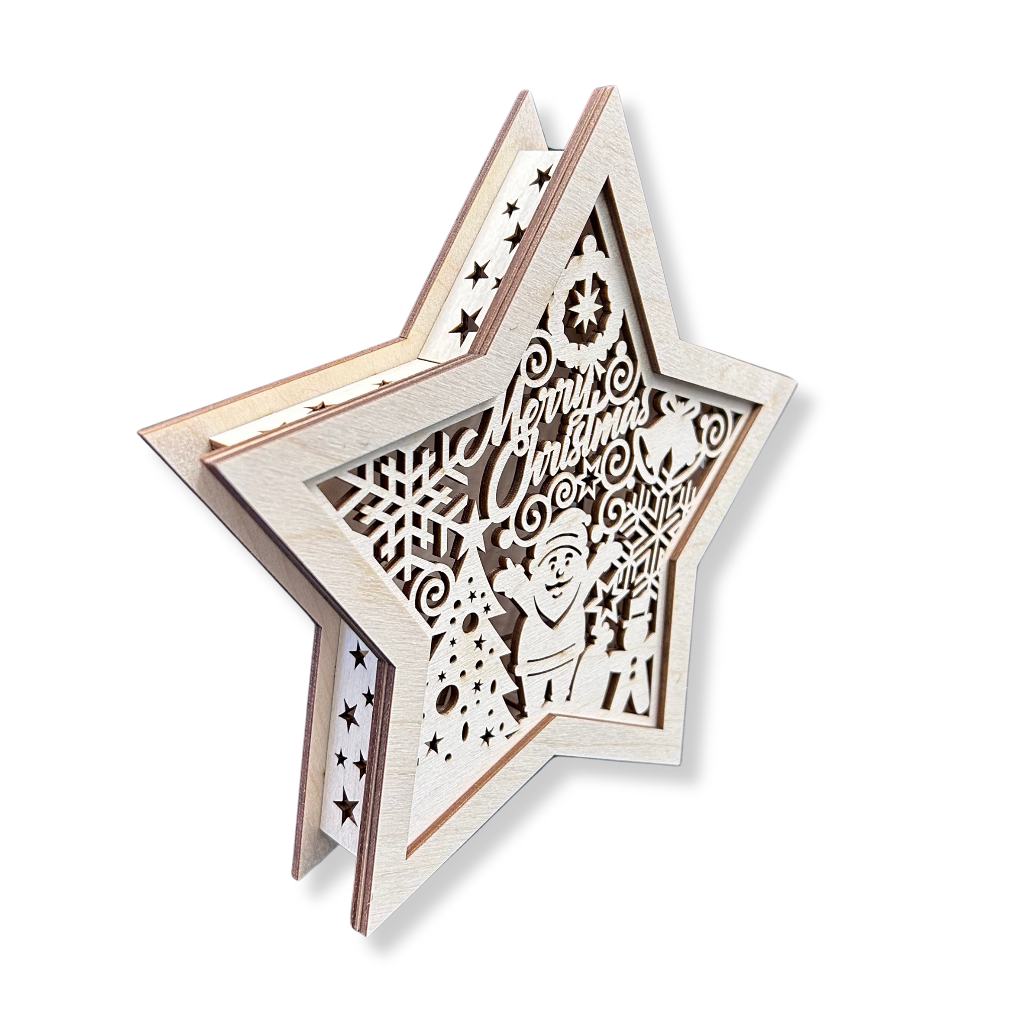 LAMPION Drewniana Gwiazdka ŚWIĄTECZNA Merry Christmas ŚWIĘTA Boże Narodzenie - bez lampek LED w zestawie