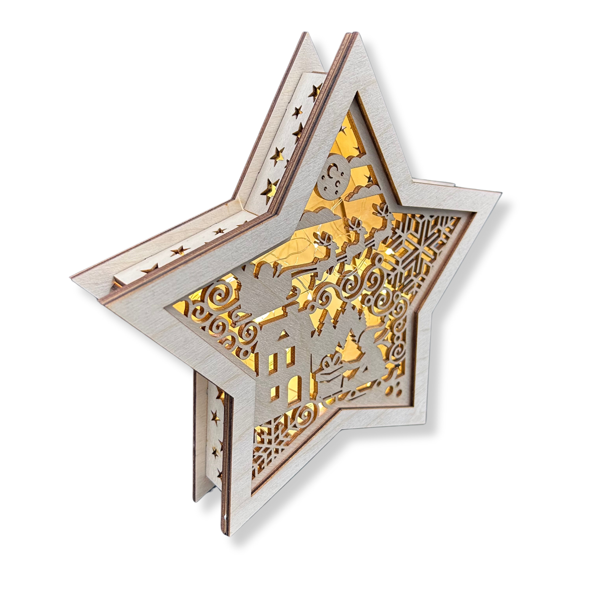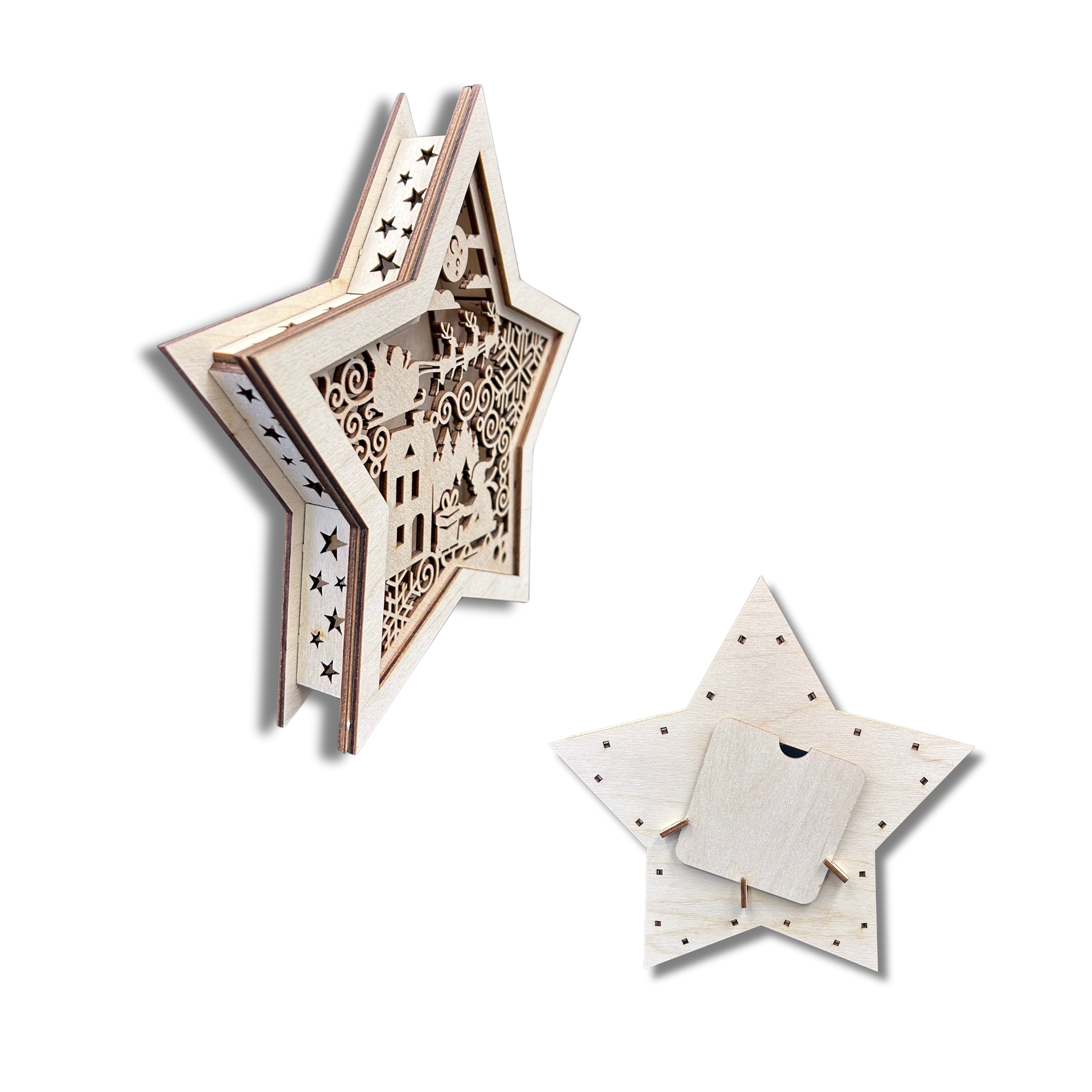 LAMPION Drewniana Gwiazdka ŚWIĄTECZNA Sanki ŚWIĘTA Boże Narodzenie - bez lampek LED w zestawie