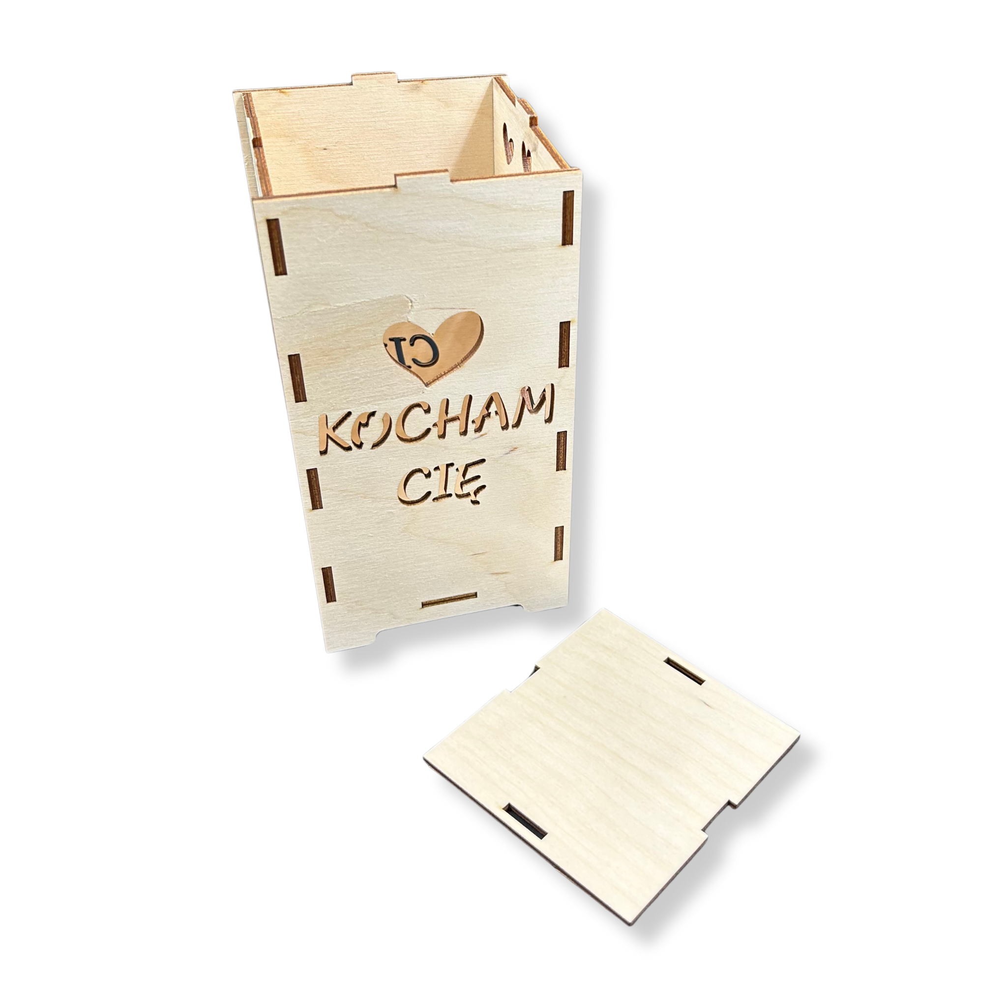 Lampion drewniany latarenka KOCHAM CIĘ walentynki
