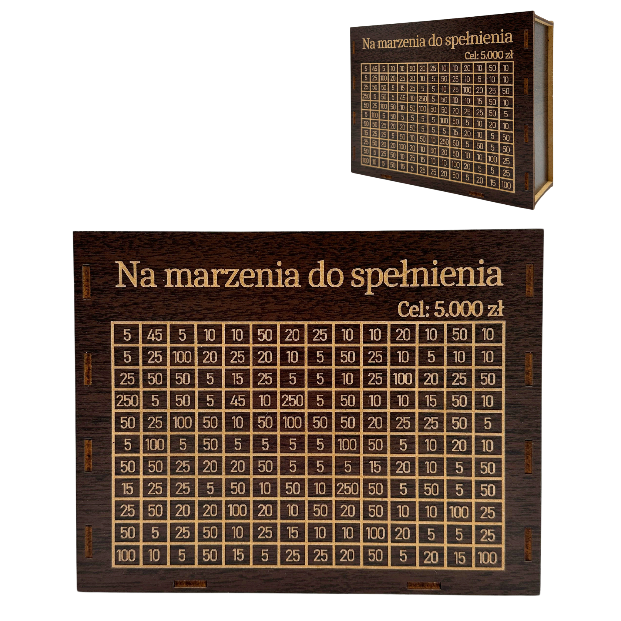 Skarbonka wykreślanka z grawerem TWÓJ NAPIS kolor WENGE