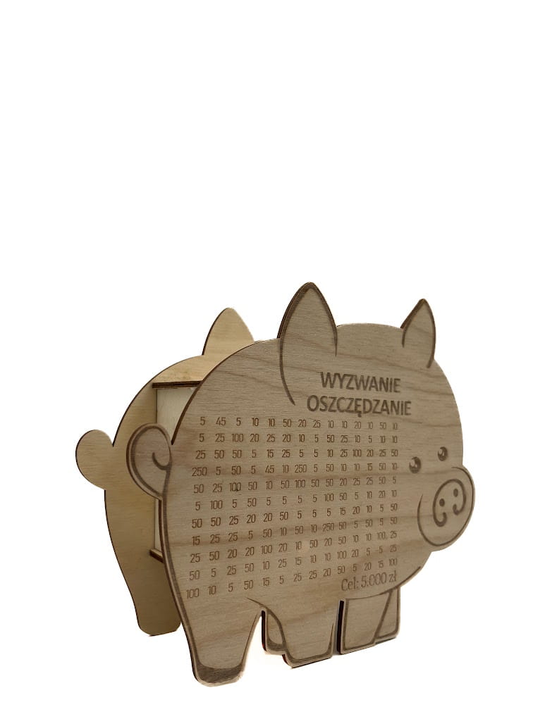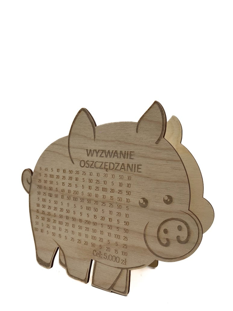 Świnka Skarbonka WYZWANIE OSZCZĘDZANIE drewno